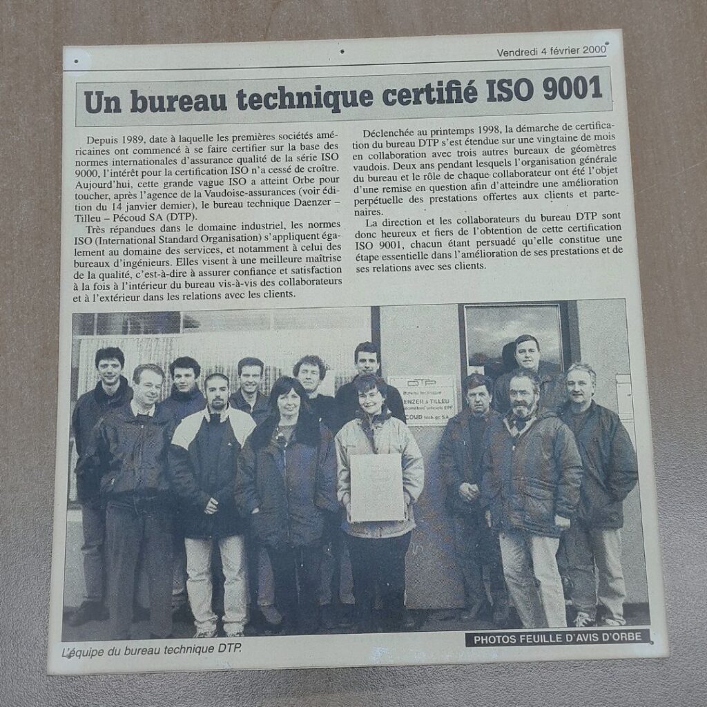 Déjà 25 ans que le bureau DTP SA s’engage à mener ses activités en conformité avec les standards ISO 9001 !